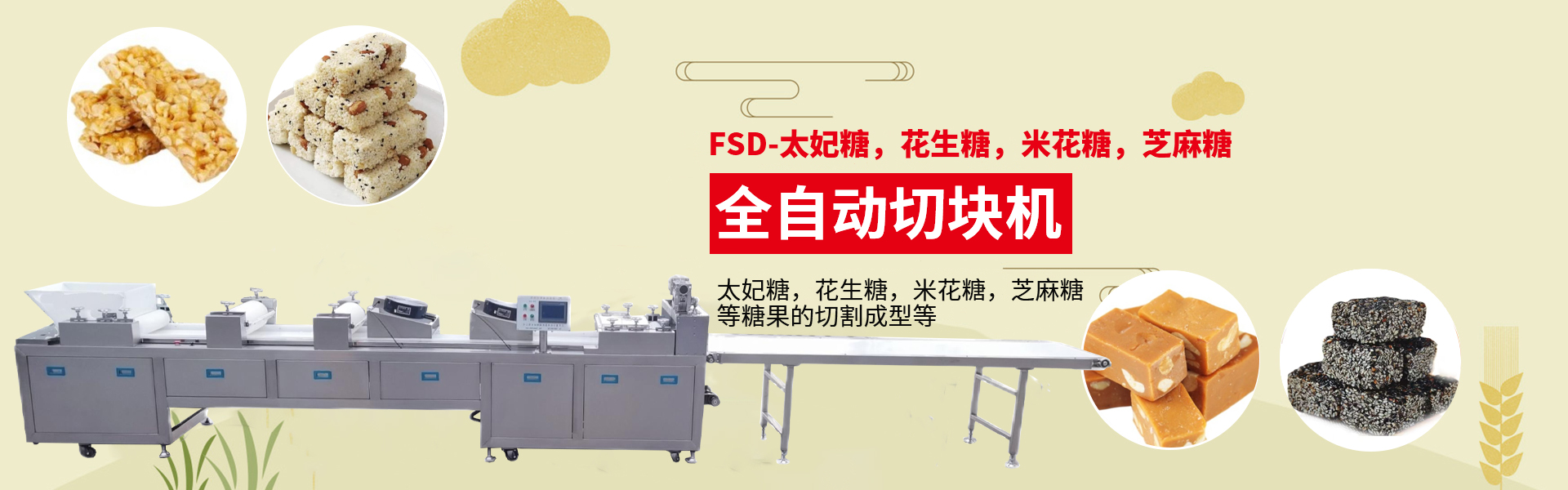 近年來研制開發沙琪瑪、雪花酥、米花糖、花生酥等休閑食品機械專業生產廠家